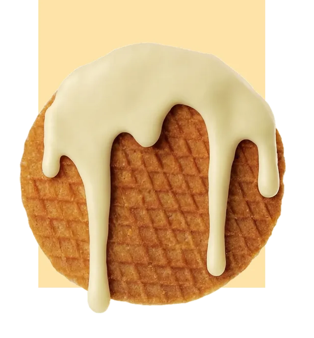 A rich, creamy filling of white chocolate with a hint of vanilla. This stroopwafel blends the gentle sweetness of white chocolate with a warm undertone. Perfect for anyone who loves refined sweetness with a sunny twist.